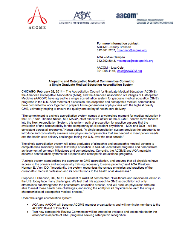 Allopathic and Osteopathic Medical Communities Commit to a Single Graduate Medical Education Accreditation System